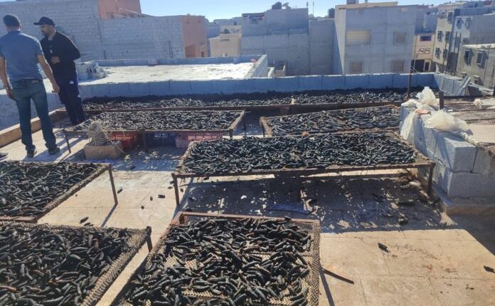 أكدت مصادر متطابقة بأن مصالح الأمن الجهوي بالداخلة بتنسيق إدارة التراب الوطني، و مصالح مندوبية الصيد البحري والسلطة المحلية، نفذت عصر اليوم الجمعة، بحي النهضة، عملية نوعية تم خلالها توقيف عدة أشخاص أشخاص يشبه تورطهم في إستهداف وبيع “خيار البحر”،حيث تم العثور على مجموعة من المعدات والأليات التي تستعمل في صيد ومعالجة خيار البحر وتجفيفه وتعبئته. بمنزل بالحي المذكور كما تم حجز قنينات اوكسجين تستعمل للغطس و عجلات مطاطية “شامبرير” تستعمل للصيد و كميات مهمة جدا من الخيار الممنوع طازجة و كميات مهمة من خيار البحر في طور المعالجة وأ خرى مجففة