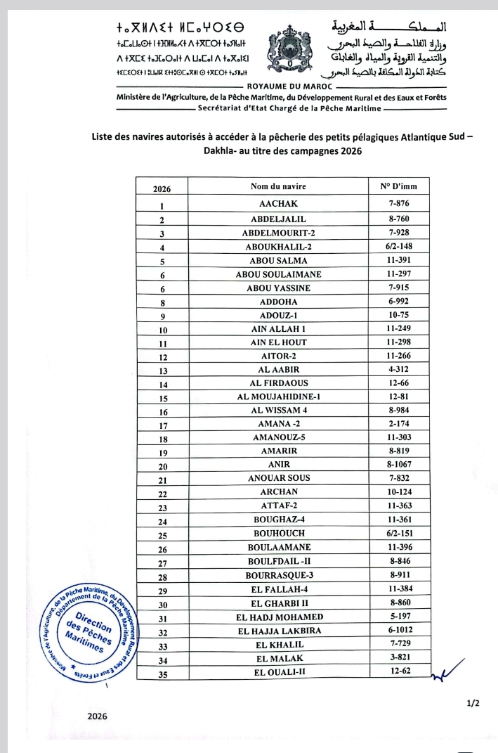 ويأتي هذا الإجراء في إطار حرص السلطات المعنية على ضمان استغلال عقلاني ومستدام لمصيدة الأسماك السطحية الصغيرة، والحفاظ على توازن المخزون السمكي بالأطلسي الجنوبي.