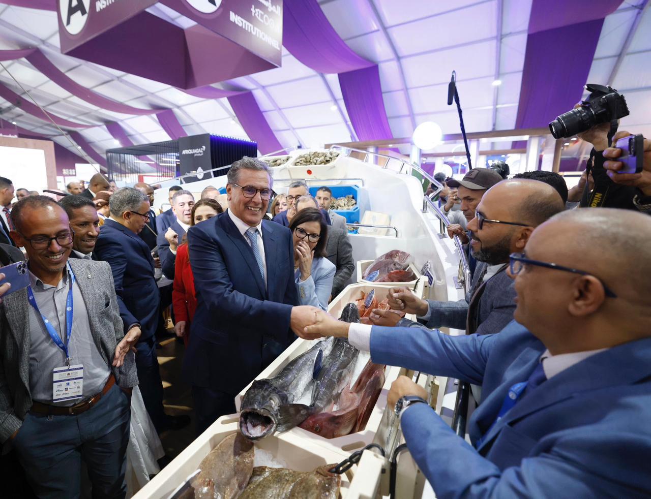 وبهذه المناسبة، قام السيد رئيس الحكومة بزيارة أقطاب المعرض الخمسة وهي: القطب المؤسساتي، والقطب الدولي، وقطب التحويل والتثمين والعمليات، وقطب الأسطول والمعدات، وقطب تربية الأحياء المائية.